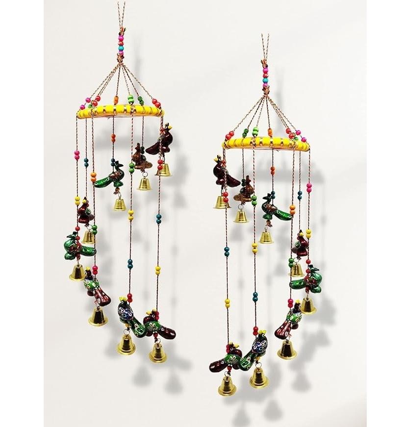 Colored Bell Wind Chime, Door/Wall Hanging Decorative Showpiece/Wall Hanging/Home Décor/Home Furnishing(Pack of 2, Peacock)