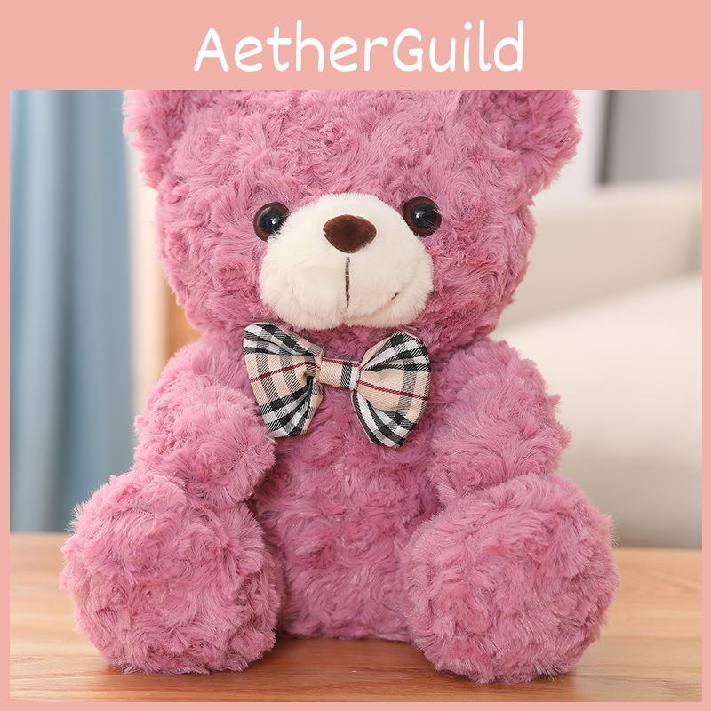 This plush bear toy features soft magic circle fabric with a charming plaid bow decoration, offering a tactile and aesthetic appeal, and is filled with durable PP cotton for a plush feel. Ideal for gifting or decorative use in bedrooms or living spaces, it provides a comforting presence. Wipe clean with a damp cloth to maintain its softness.