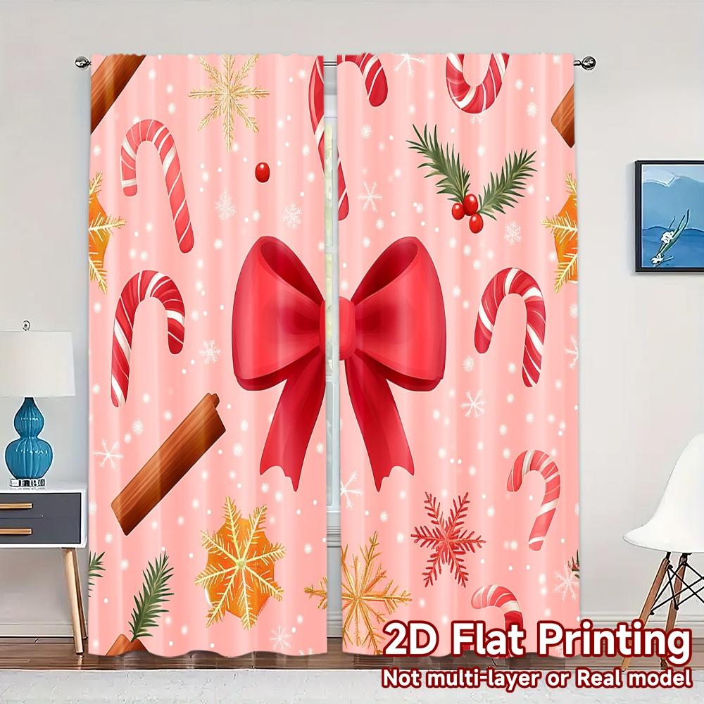 2pcs,Curtains Christmas Bows Candy Cane Ornaments (3) Print Modern Curtains 100% Polyester Curtains Gifts Ldeal for Kitchen