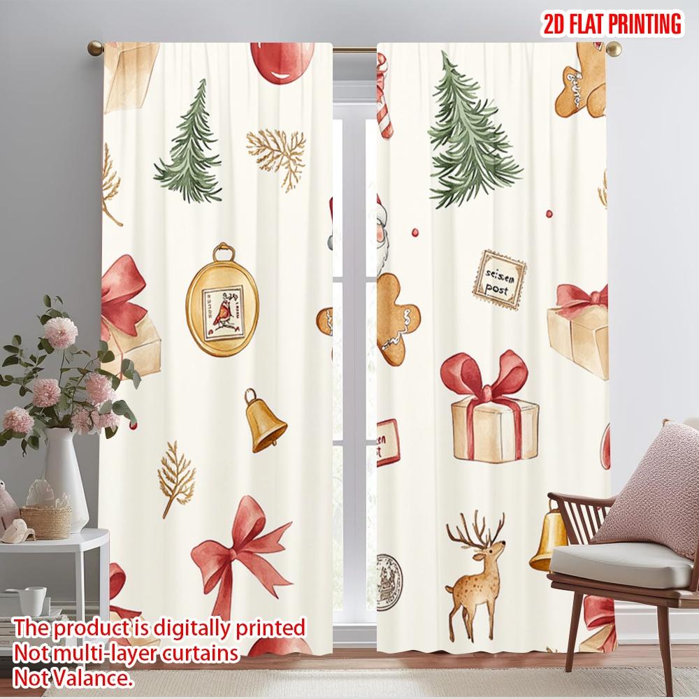 2pcs,2D Plane Printing Window Curtain Christmas Bells Bows Delivery Versatile Durable Polyester (without Rod) Decorations For