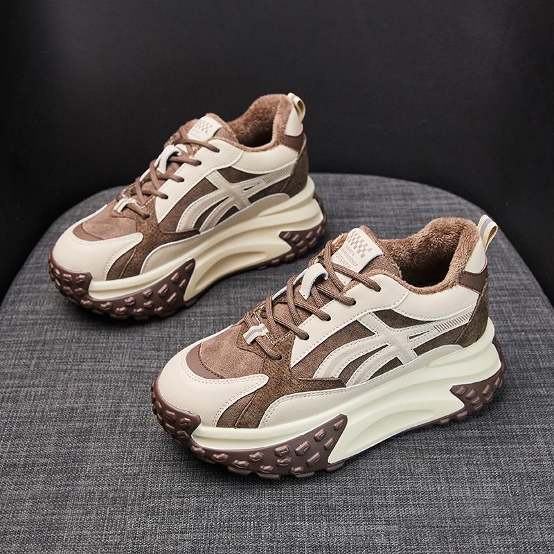 Platform Dad Shoes Women's Winter Leather Bread Shoes Inner Height Increase Velvet Casual Sports Forrest Gump Shoes