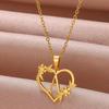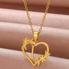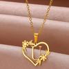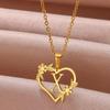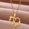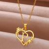 New English Alphabet Heart Pendant Gold Flower Premium Titanium Steel Gold Plated Necklace Clavicle Chain Fresh Woman