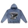 DTG Print Knitted Denim Zip-Up Hoodie Aftermath Brother Print Zipper Hoodies