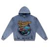 DTG Print Knitted Denim Zip-Up Hoodie Freedom Coastal Brother Print Zipper Hoodies