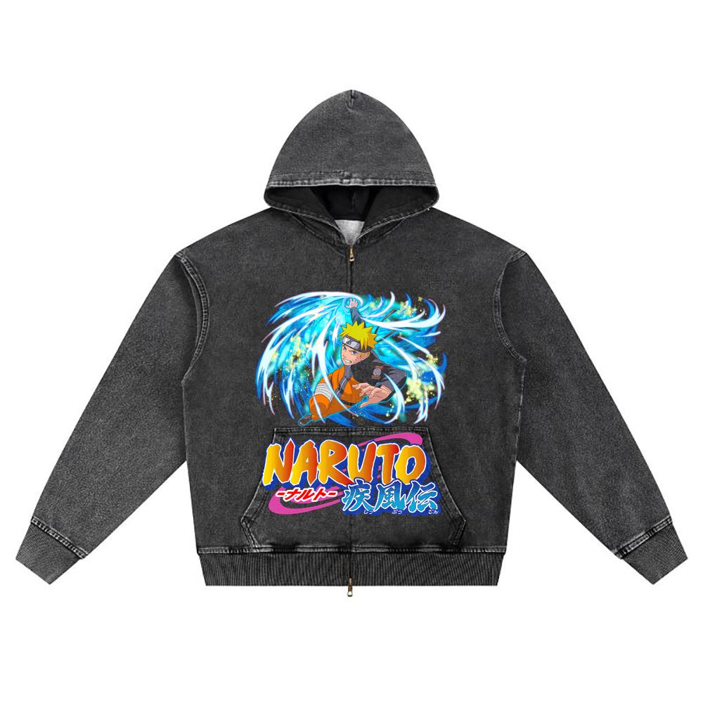 DTG Print Knitted Denim Zip-Up Hoodie Copy of Naruto Rasengan Brother Print Zipper Hoodies
