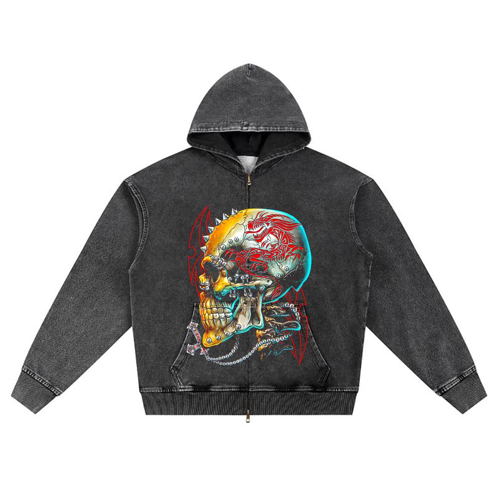 DTG Print Knitted Denim Zip-Up Hoodie Copy of Skull Trival Brother Print Zipper Hoodies
