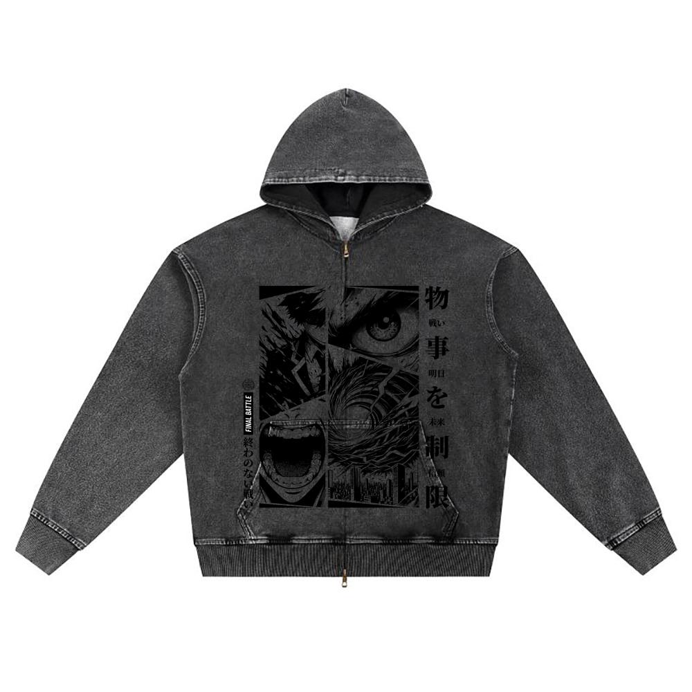 DTG Print Knitted Denim Zip-Up Hoodie Final Battle Brother Print Zipper Hoodies