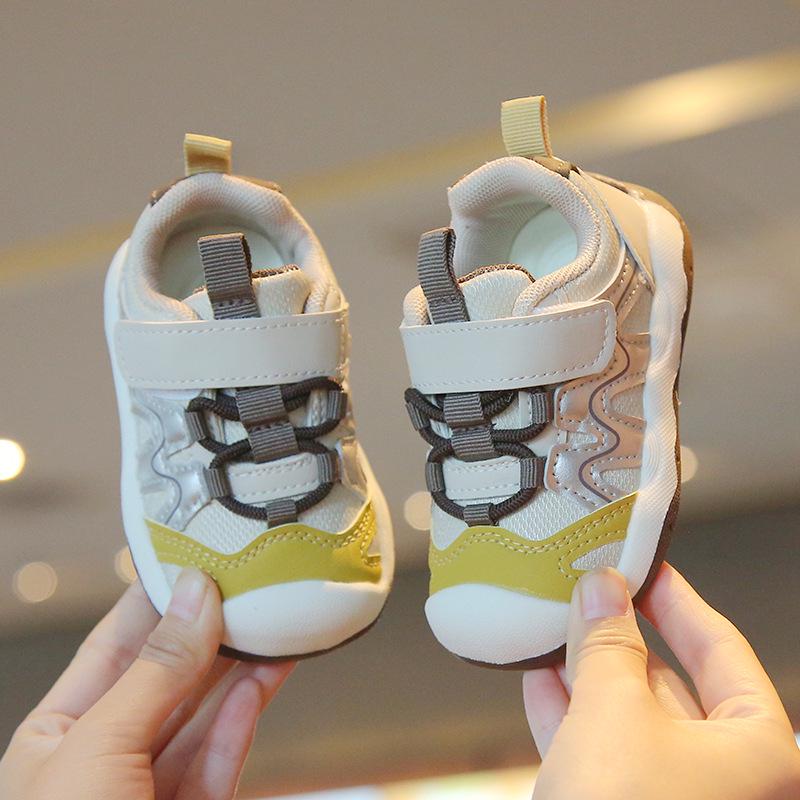 Breathable Anti-Slip Soft Sole Baby Walking Shoes - Boys & Girls Color Block Magic Tape