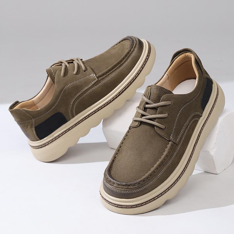 Introducing the perfect blend of vintage style and modern comfort, these men's casual shoes are part of the 2025 Autumn Collection. Crafted from genuine leather, they feature a thick rubber sole for superior traction and durability. The leather lining ensures a plush feel, while the classic lacing closure offers a secure and adjustable fit. Ideal for everyday wear, these shoes effortlessly combine retro flair with contemporary functionality, making them a versatile addition to any wardrobe.