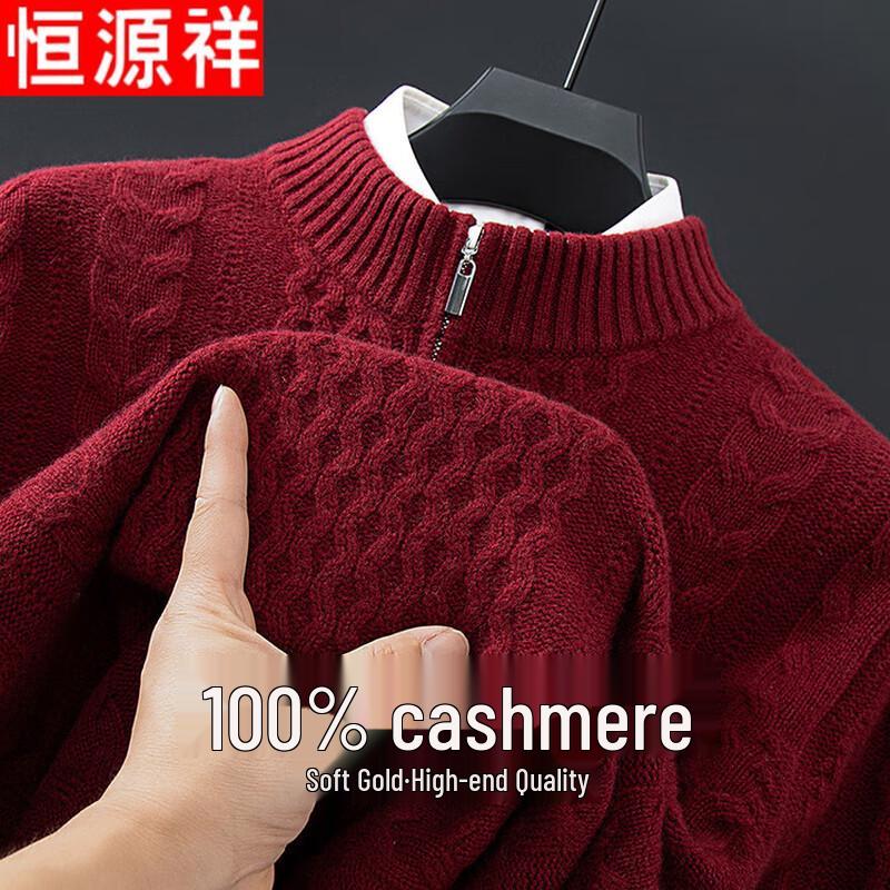 Hengyuanxiang Men's Cashmere Half-Zip Pullover Sweater