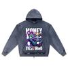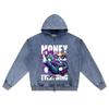 DTG Print Knitted Denim Zip-Up Hoodie Money Over Everything Brother Print Zipper Hoodies