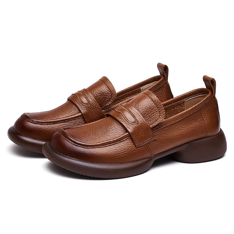 Genuine Leather Soft Sole Loafers for Women - Plus Size 43, Comfortable Slip-On Shoes with Thick Soles for Middle-Aged and Elderly