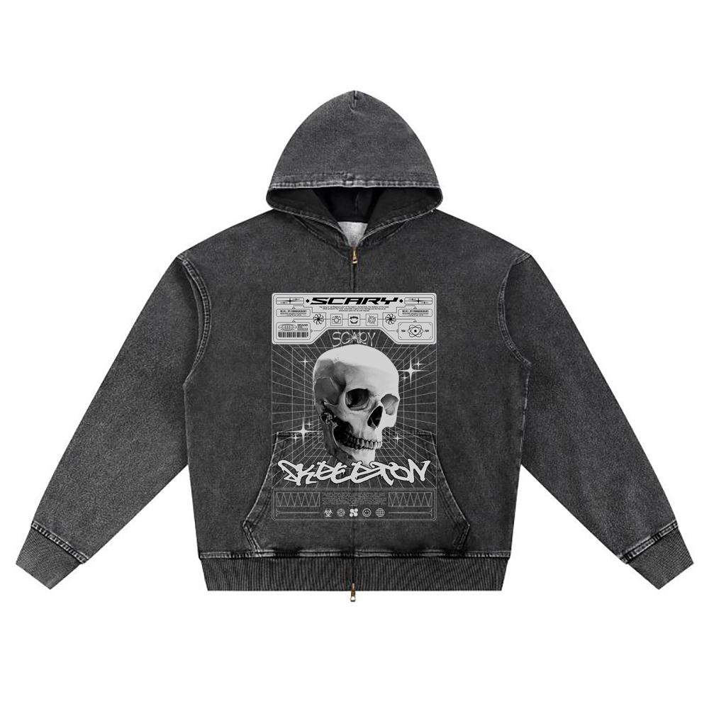 DTG Print Knitted Denim Zip-Up Hoodie Streetwear Brother Print Zipper Hoodies