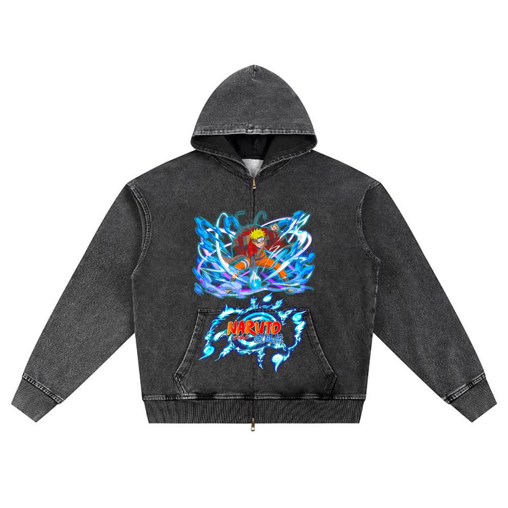 DTG Print Knitted Denim Zip-Up Hoodie Copy of NARUTO Brother Print Zipper Hoodies