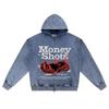DTG Print Knitted Denim Zip-Up Hoodie Money Shots Brother Print Zipper Hoodies