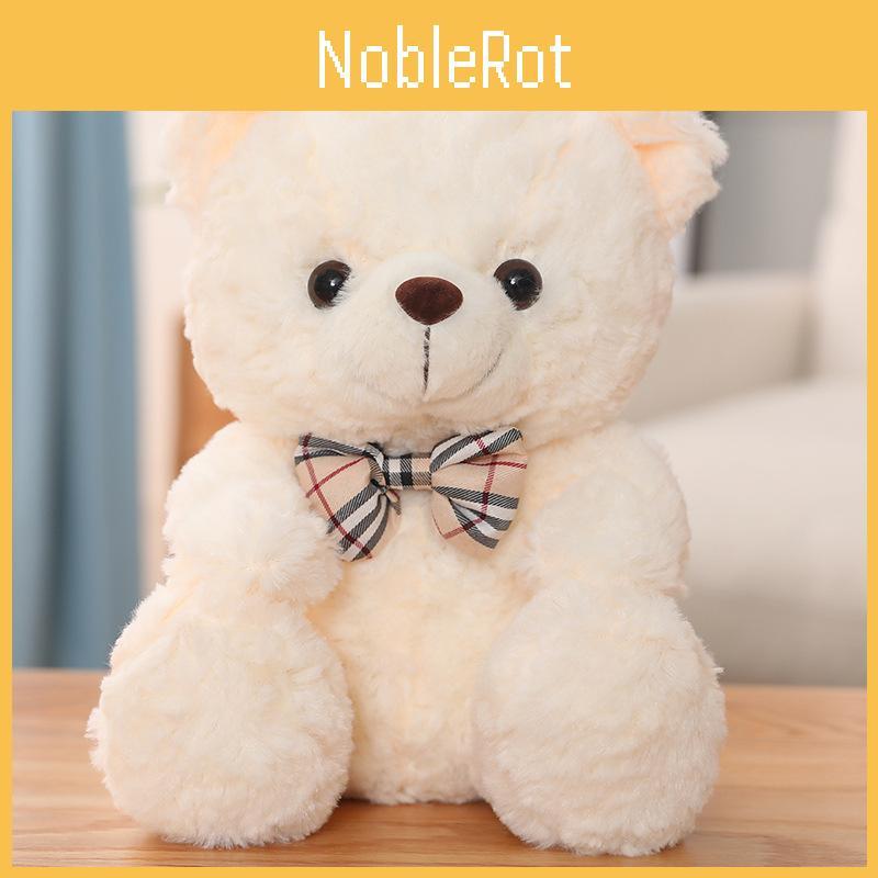 This plush bear toy features soft magic circle fabric with a charming plaid bow decoration, offering a tactile and aesthetic appeal, and is filled with durable PP cotton for a plush feel. Ideal for gifting or decorative use in bedrooms or living spaces, it provides a comforting presence. Wipe clean with a damp cloth to maintain its softness.