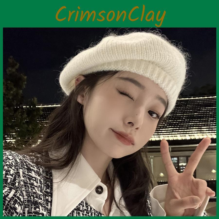 Stylish Knit Mohair Beret Hat For Women Warm And Fuzzy Painter Cap In Multiple Colors