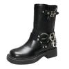 2025 British Style Women's Chunky Heel Martin Boots - Retro Square Toe Slip-On Ankle & Cowboy Riding Boots