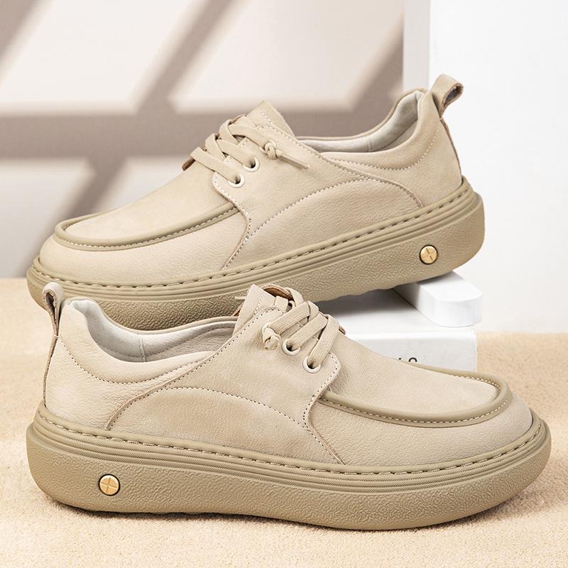 2025 Autumn Men's Height-Boosting Thick-Soled Leather Skate Shoes - Comfortable, Fashionable Lace-Up Design