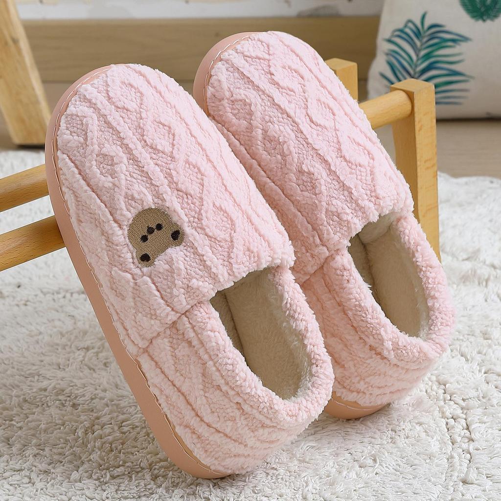Women's & Men's Cute Little Bear Plush Cotton Slippers for Autumn & Winter - Heel-Covered, Warm Indoor Footwear