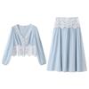Plus-size Women's Long-sleeved V-neck Top, High-waisted Skirt, Lace Patchwork Set for Spring and Autumn