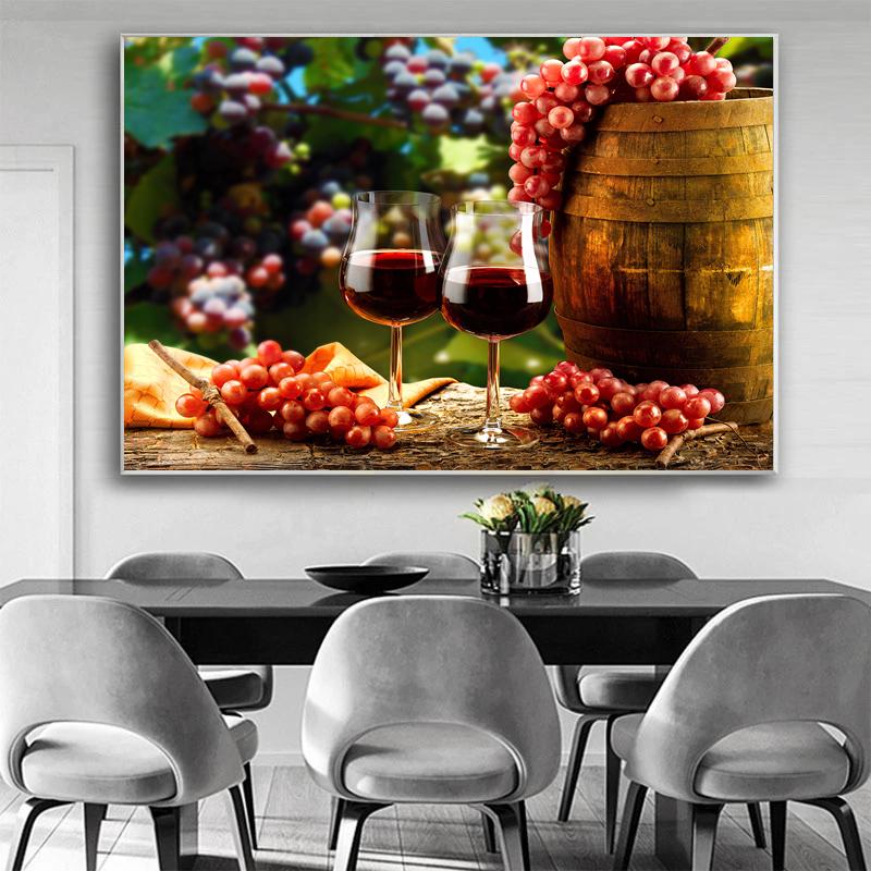 Wine Glass Bottle Posters and Prints Canvas Painting Wall Art Pictures for Dining Room Home Decor Grapes Wooden Barrel Cuadros
