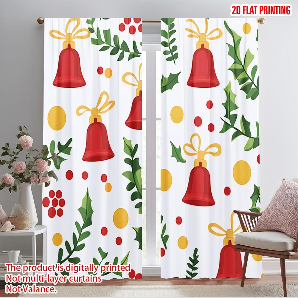 2pcs,2D Plane Printing Popular Curtain Panels Christmas Bells Holly Berries_a (2) Polyester (without Rod) Versatile All Perfect