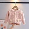 This stylish knit cardigan is perfect for the 2025 autumn season, designed specifically for girls with a flair for Korean fashion. Crafted from luxurious rabbit fur, it offers both warmth and comfort, making it an ideal outerwear choice for early autumn days. The cardigan features long sleeves, providing extra coverage and coziness. With its chic design and soft texture, this sweater is sure to become a favorite in any child's wardrobe, adding a touch of elegance to their autumn outfits.