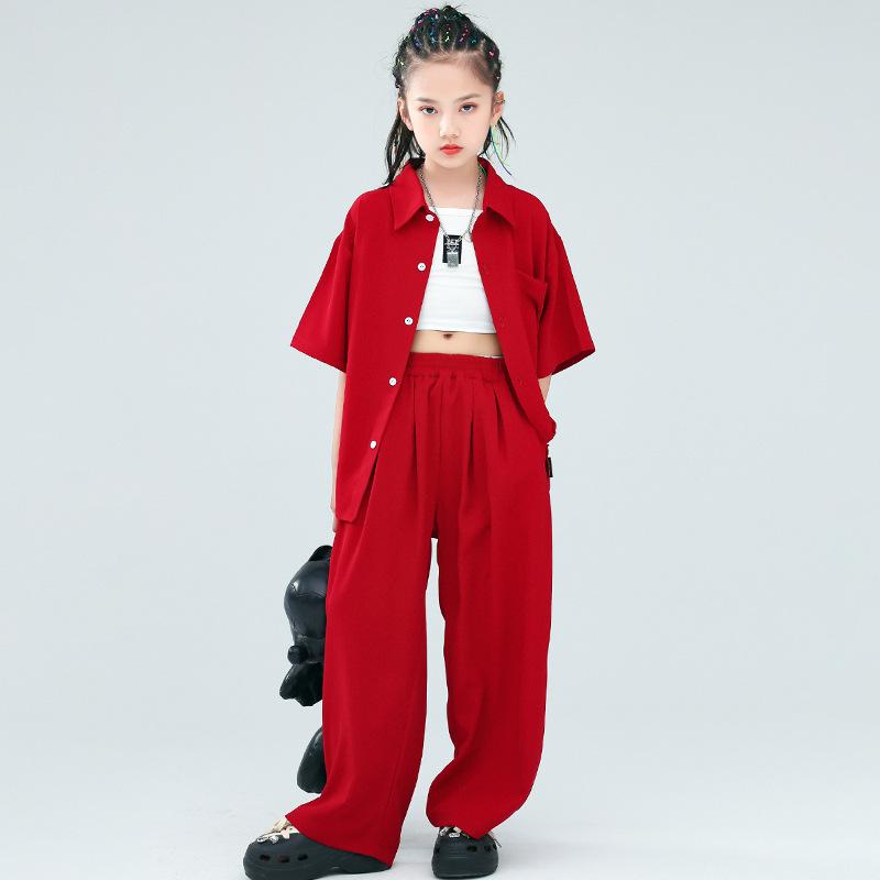 Children's Trendy Street Dance Outfit - Loose Pants and Shirt Set for Boys and Girls Jazz Performance.