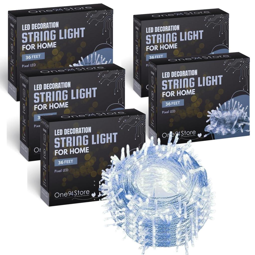 36 Ft LED Pixel String Lights White LED Bulb Copper Wire Serial Lights , Christmas, & Home Decoration | Fairy Decorative Lighting | Pack of 5