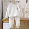 Keep your little ones warm and comfortable during the colder months with this adorable cotton long underwear set. Crafted from high-quality, soft cotton, this set ensures cozy wear while offering breathability and comfort. Perfect for layering or lounging at home, it provides an ideal combination of warmth and style for your kids during the autumn and winter seasons. Featuring playful designs, this homewear set is both cute and functional, making it a must-have addition to your child's wardrobe.