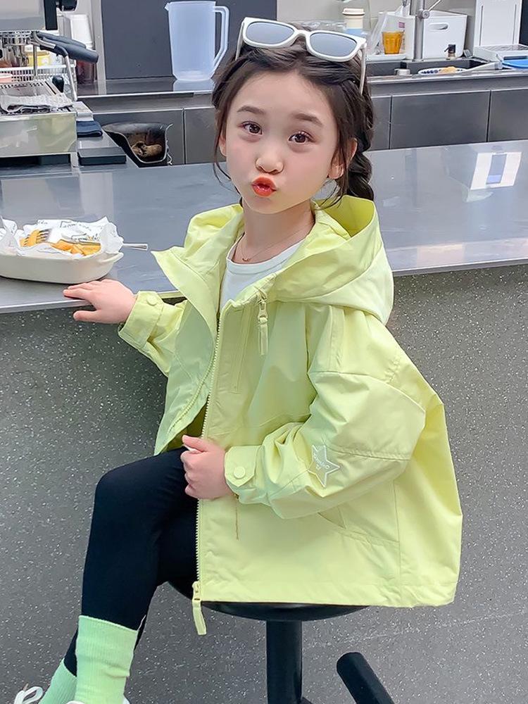 Girls' Spring & Autumn Hooded Windbreaker 2025 - Fashionable, Casual Children's Coat