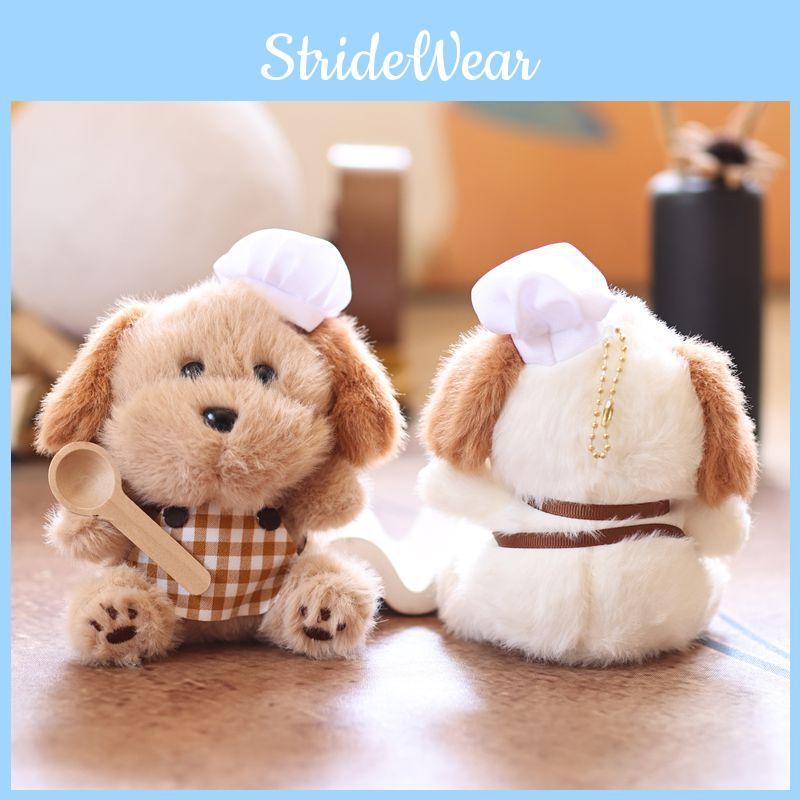 Puppy Cartoon Cute With Chef Hat Spoon Plaid Apron Plush Toy Keychain Pendant