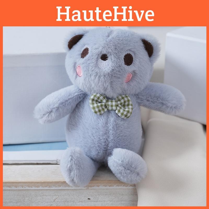 Tie Bow Grid Teddy Bear Plush Toy Soft Fill Doll Backpack Keychain Holiday Gift