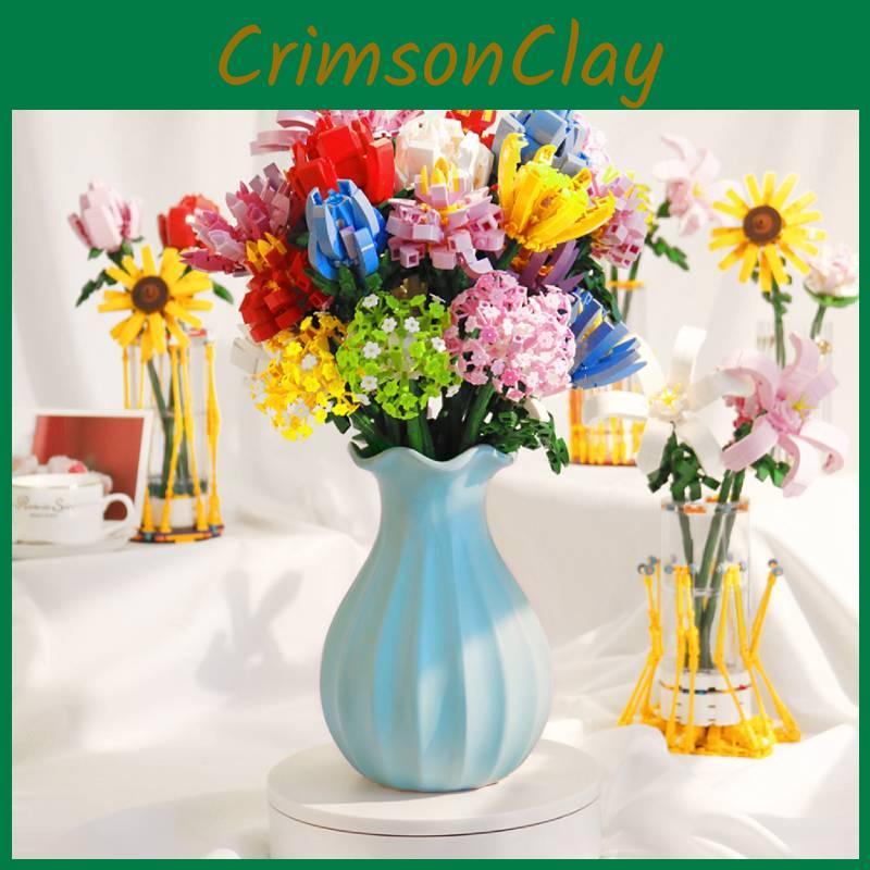 Children Puzzle Assembling Building Blocks Flower Rose Lily Bouquet Toy Model