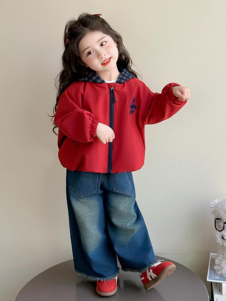 This stylish girls' hooded coat is perfect for the 2025 spring and autumn seasons. It features long sleeves and is crafted from a comfortable cotton blend material, offering both warmth and durability. The coat's design is inspired by modern Korean fashion, adding a trendy touch to any outfit. Whether for school or a day out, this coat ensures your little one stays cozy and chic.
