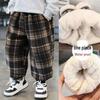 These cozy fleece-lined plaid sweatpants are perfect for keeping your toddler warm during the winter months. Crafted from high-quality polyester, they offer both comfort and durability. The one-piece design ensures a snug fit, while the stylish plaid pattern adds a touch of classic charm to your little one's wardrobe. Ideal for casual outings or playtime, these pants provide both warmth and style for your toddler.