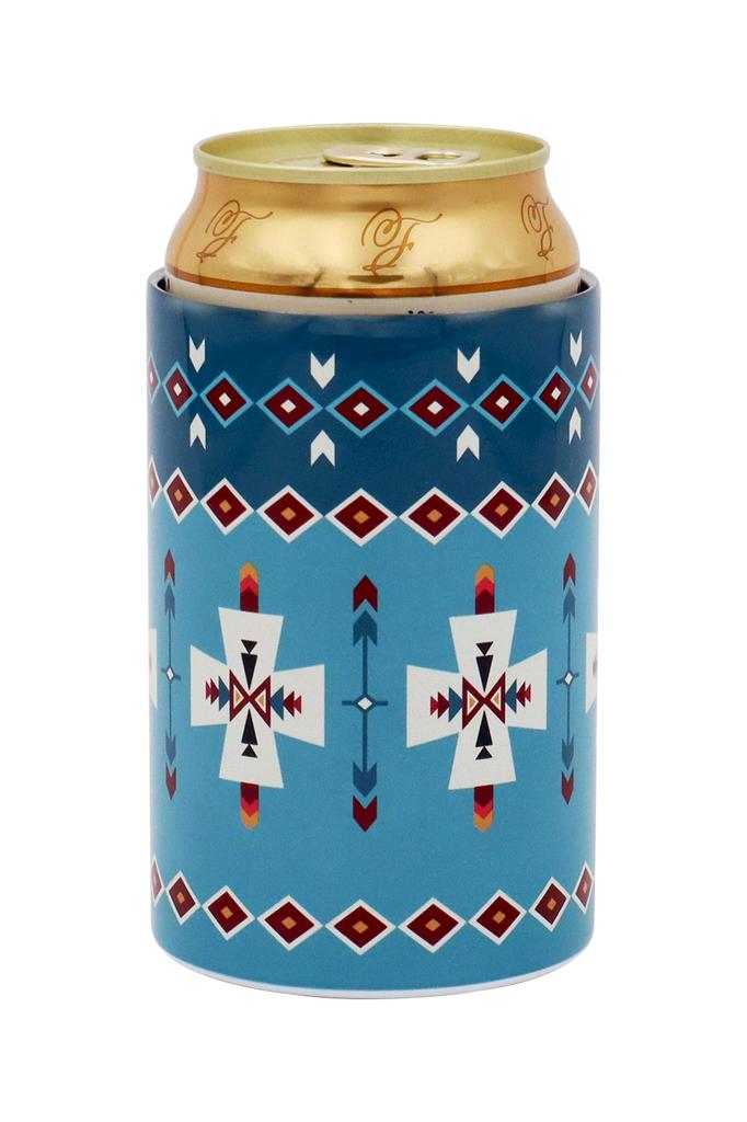 Ogura Pottery Can Holder, 350ml, Vacuum Insulated, Keeps Cold and Warm, for Tumblers, Native American Pattern (for 350ml Cans, B. Blue)