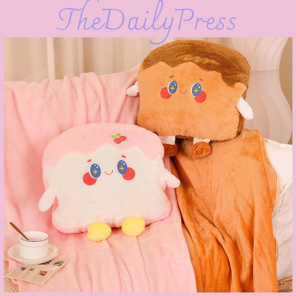 Plush Cute Toast Toy Blanket Set Dual Use Office Nap Blanket Birthday Gift Girls