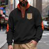 Fashionable American Winter Men's Loose Velvet Stand-up Collar Contrast Patch and Pocket Zipper Sweatshirt
