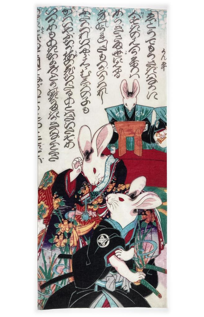 Utagawa Yoshifuji's rabbit-patterned tenugui towel