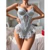 Sexy Lace Patchwork Waist-Shaping Backless Bodysuit with Hidden Button Closure