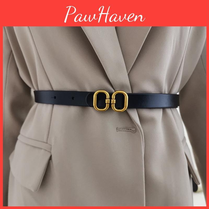 This leather waist belt for women features a two-layer genuine leather design with a slim profile less than 2cm wide, providing a sleek and versatile accessory. The alloy buckle with a snap closure ensures a secure fit and easy adjustment, measuring 105cm in length. Suitable for dresses and outerwear, it enhances casual and office outfits. Easy to maintain by wiping with a damp cloth.