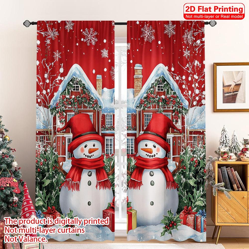2D Flat Printing 2Pcs Christmas Curtains For Living Room House Red Snowman Printed Window Curtain Natural Drapes For Bedroom
