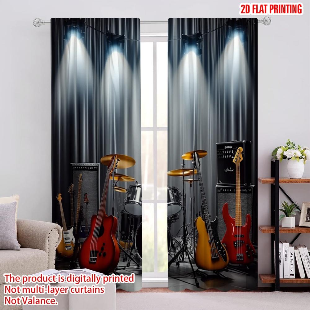 2pcs Window Drapes Rock Band Themed Machine Washable Fabric,Without Electricity Festive Backdrops Applies To Decorations