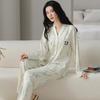 Experience comfort and style with this all-cotton long sleeve pajama set, perfect for spring and autumn. Designed with a casual cardigan and long pants, it offers a cozy fit without sacrificing fashion. Its versatile design allows it to be worn both indoors and outdoors, making it an excellent addition to your wardrobe. The set is made entirely of a cottonMaterial, ensuring breathability and softness against your skin. Enjoy the combination of practicality and elegance with this timeless sleepwear essential.