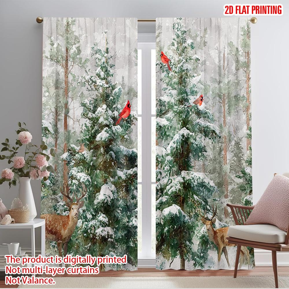 2pcs,2D Plane Printing Light Filtering Curtains Christmas Pine Tree Snowflake Versatile Polyester Fabric (without Rod)