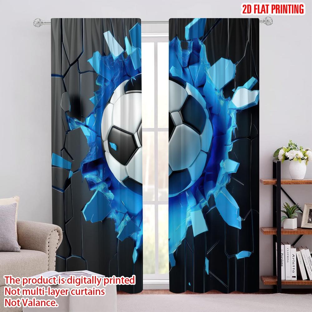 2D Flat Printing 2pcs Curtain Soccer2 Versatile Fabric,Without Electricity Spring Party & Holiday Decor Applies To Holiday