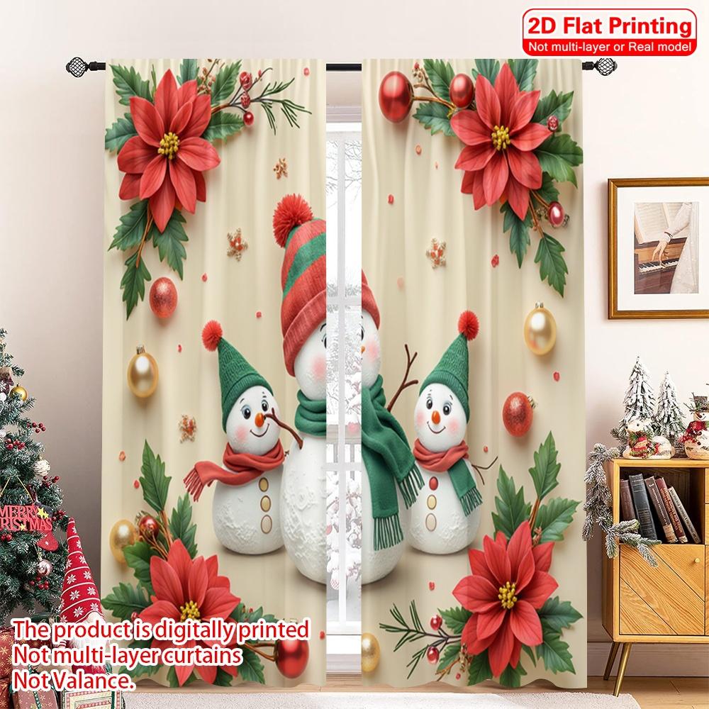 2pcs 2D Flat Printing Merry Christmas Popular Window Drapes Christmas Snowman Family Festive Celebration 100% Polyester Without
