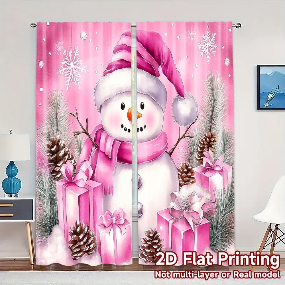 2pcs,Curtains Cute Snowman Christmas Winter Holiday Modern Contemporary Curtains Prints Light Filtering Curtains Decorations